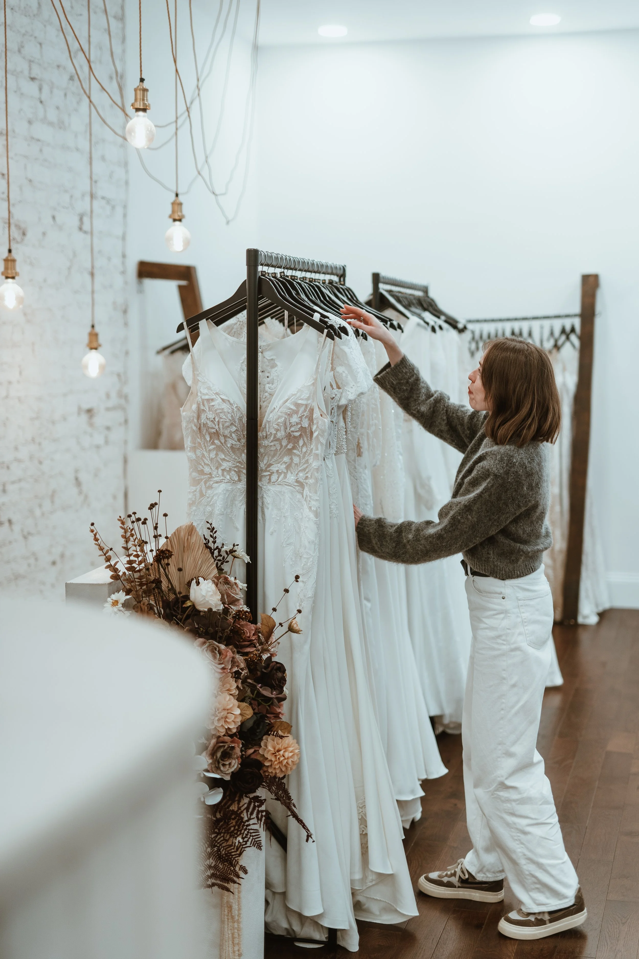 Below are inspirational images to represent the style of dresses available in store from this designer.